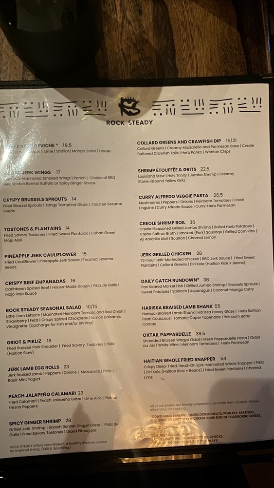 Rock Steady - Atlanta is a sophisticated Caribbean restaurant and cocktail bar located in Atlanta. The menu boasts delicious dishes like Buss Up Shut Roti, Oxtail Pappardelle, and Mango Shrimp. The atmosphere is trendy, intimate, and upscale, with unique lighting fixtures adding to the ambiance. Customers rave about the strong yet sweet cocktails, live DJ on Saturday nights, and late-night menu available until 1 am. The staff is described as friendly and helpful, adding to the overall positive dining experience. For a taste of AfroCaribbean influence in a chic setting, Rock Steady - Atlanta is the place to be.